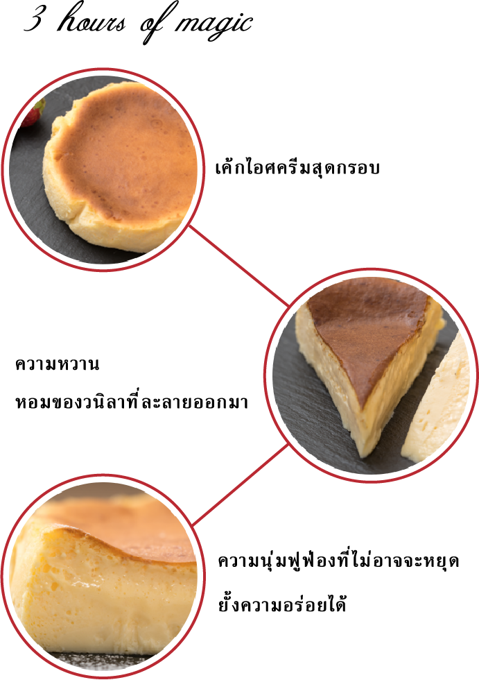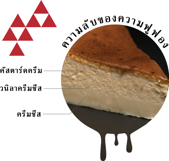 ขณะที่อยู่ในปาก เนื้อเค้กที่สัมผัสกับลิ้น จะละลายทันทีทำให้ได้รสชาติของชีสชั้นเลิศ ระเบิดเต็มคำ และความหอมหวานจะหมุนวนอยู่ในปากของคุณ